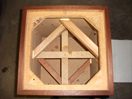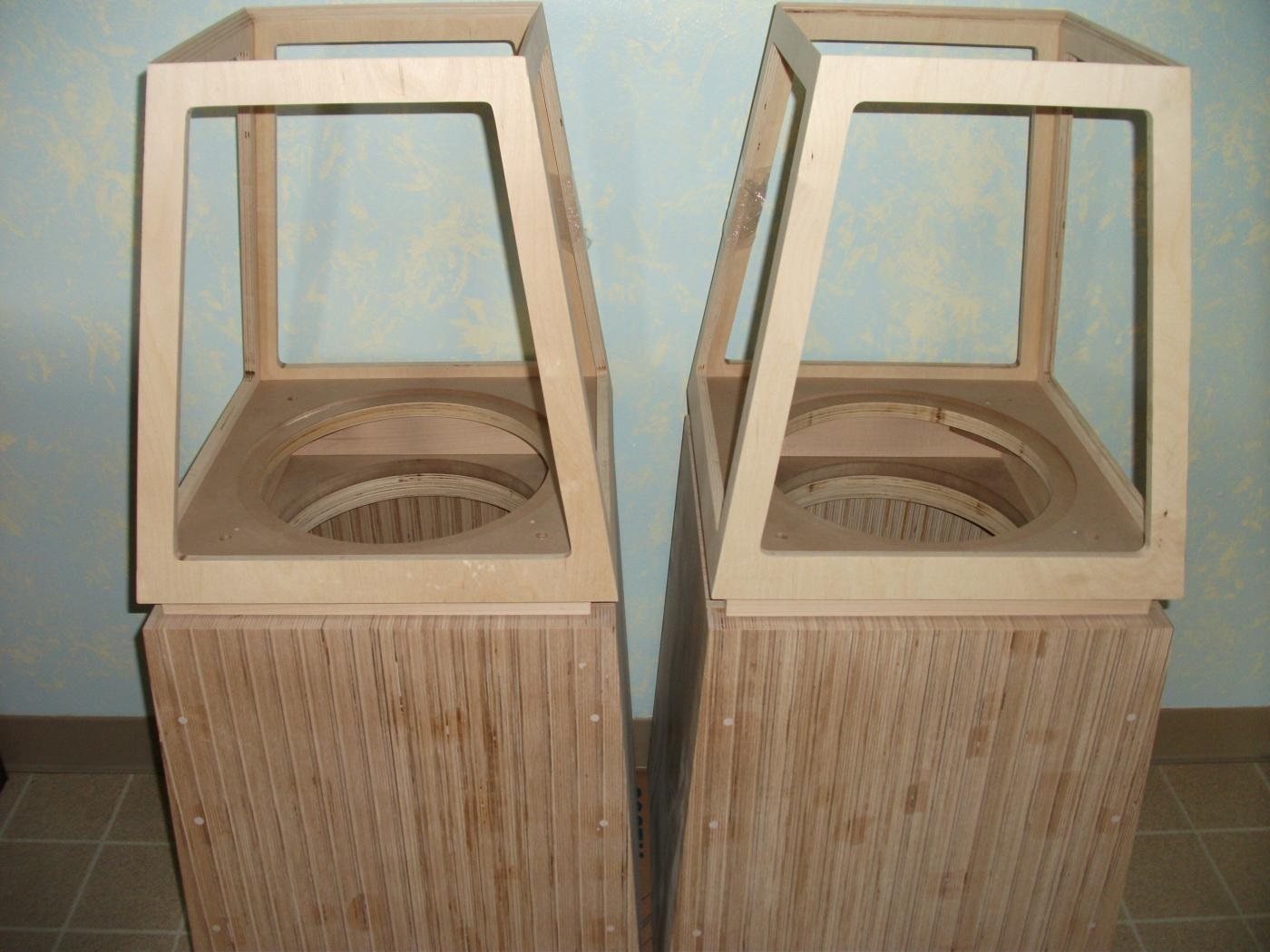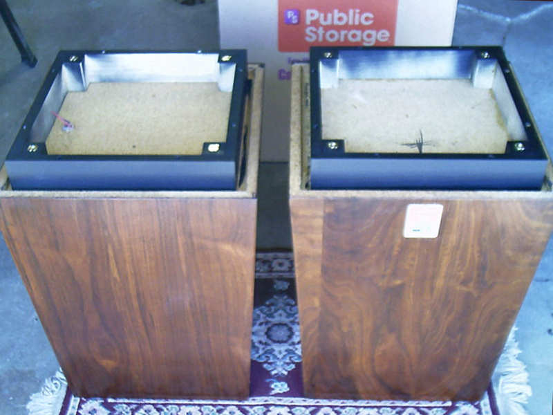 New stair-step oak bracing installed in re-manufactured TLS-1 Hybrid cabinettry for resonance control. |